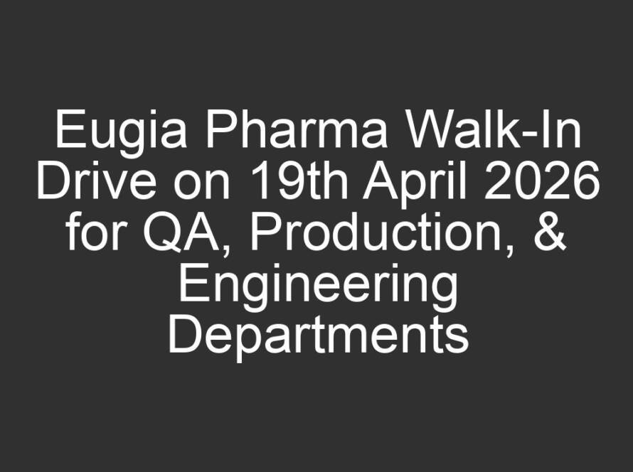 All Jobs, All over India Jobs, Multi National company Jobs12 hours agoEugia Pharma Walk-In Drive on 19th April 2026 for QA, Production, & Engineering Departments
