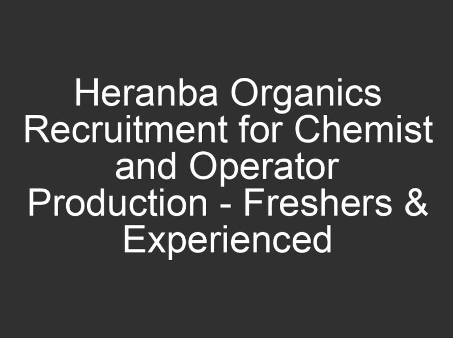 All Jobs, All over India Jobs, Multi National company Jobs12 hours agoHeranba Organics Recruitment for Chemist and Operator Production – Freshers & Experienced