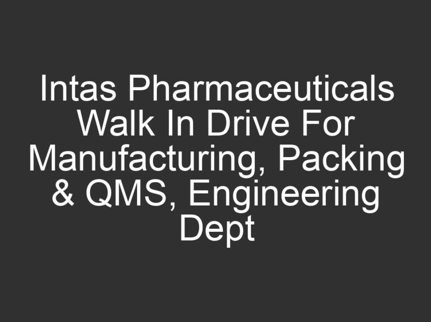 All Jobs, All over India Jobs, Multi National company Jobs3 hours agoIntas Pharmaceuticals Walk In Drive For Manufacturing, Packing & QMS, Engineering Dept