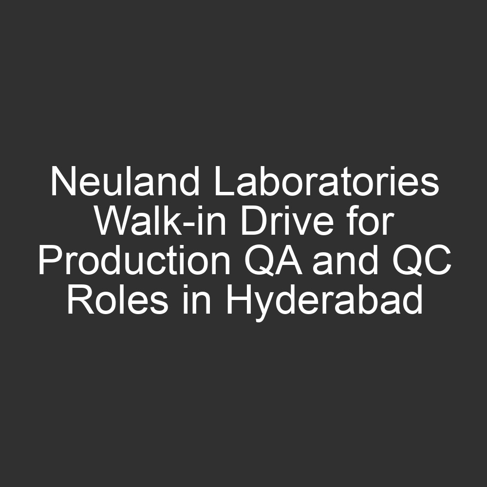 Neuland Laboratories Limited, a leading pharmaceutical company specializing in Active Pharmaceutical Ingredients (APIs), is hosting a walk-in drive for its Unit-2 facility. They are seeking talented professionals for Production, Quality Assurance, and Quality Control departments in Hyderabad. Join a globally recognized organization committed to quality and excellence in life sciences.