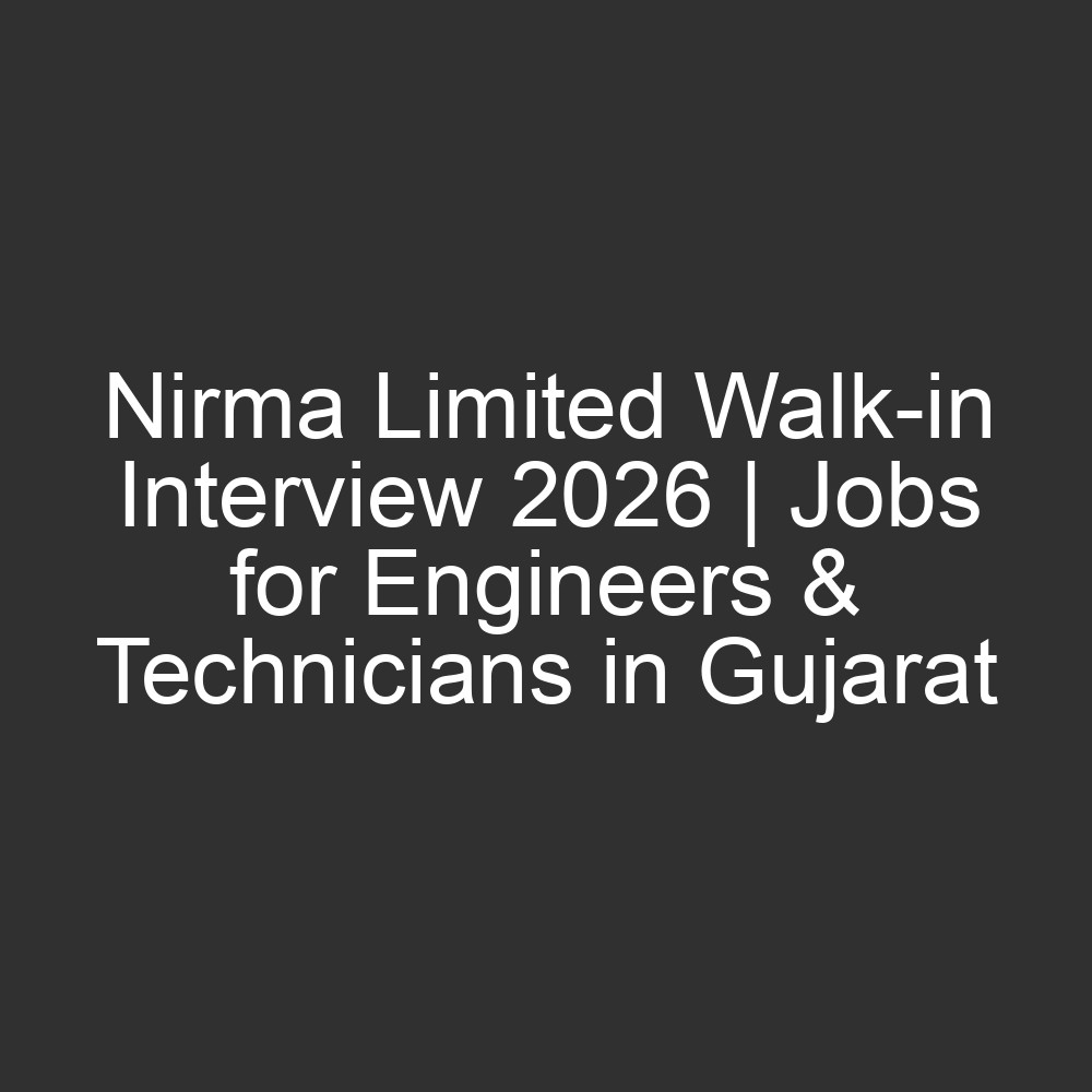 Nirma Limited Recruitment 2026: Walk-in Interview for Engineers & Technicians