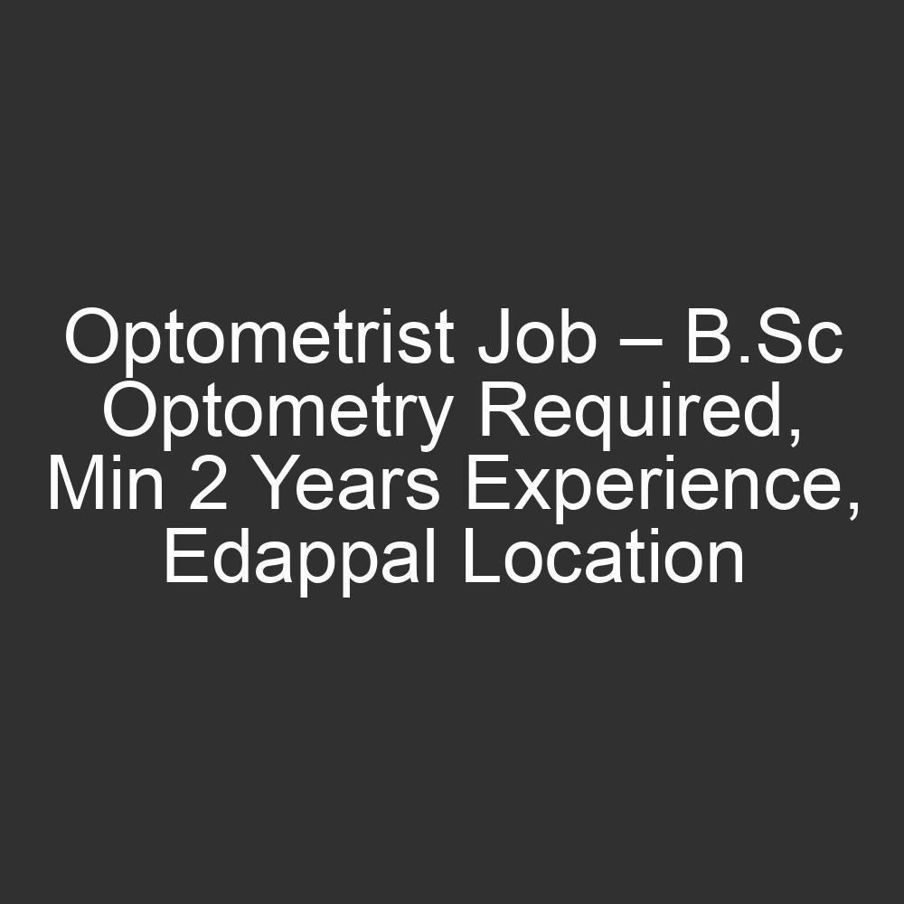 Optometrist Job – B.Sc Optometry Required, Min 2 Years Experience, Edappal Location
