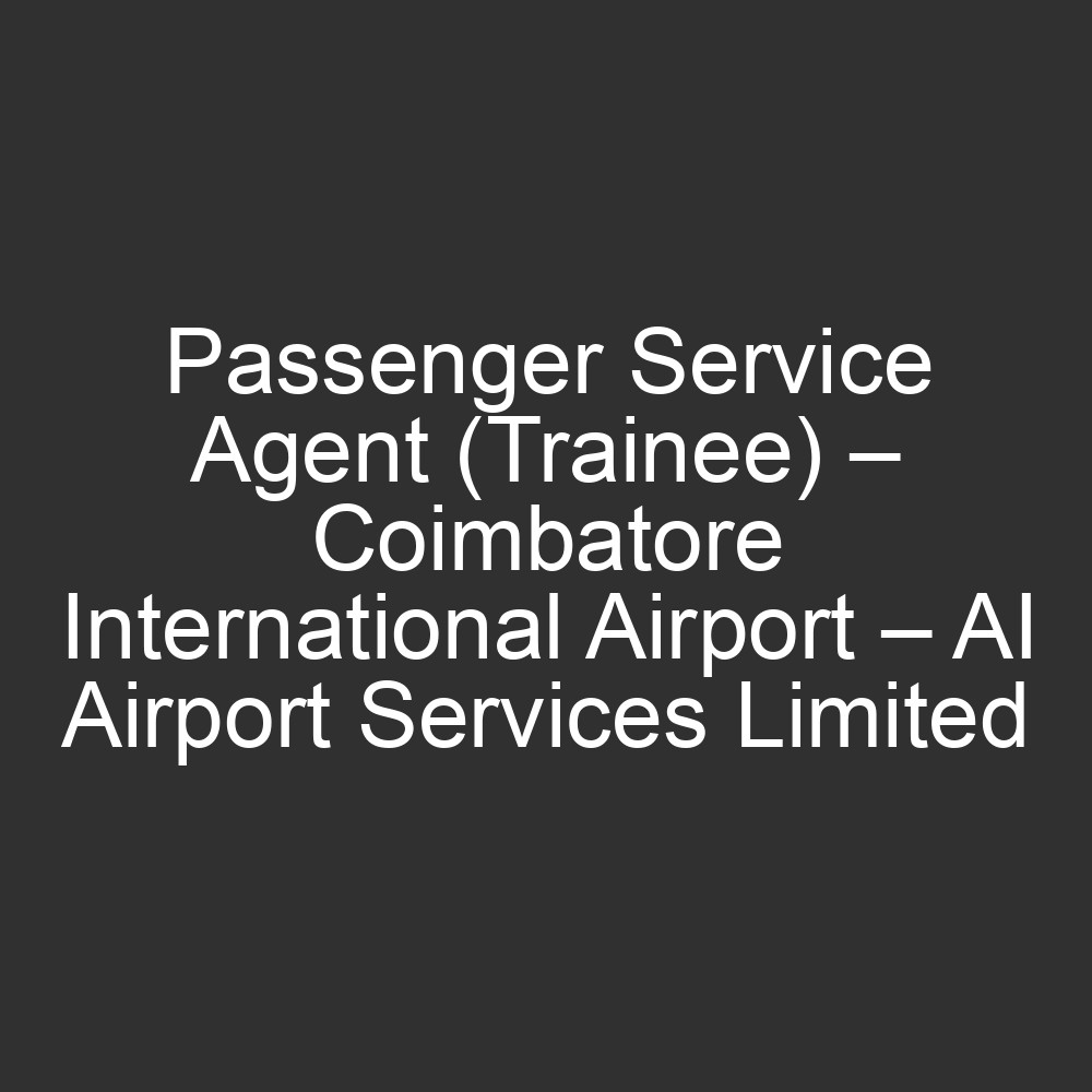 Passenger Service Agent (Trainee) – Coimbatore International Airport – AI Airport Services Limited