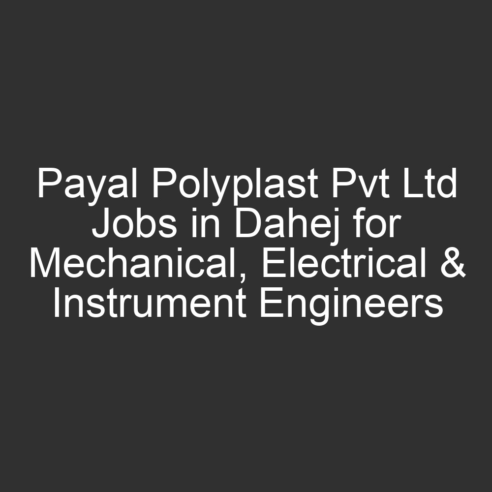 Payal Polyplast Pvt Ltd Recruitment Drive for Engineers in Dahej. |