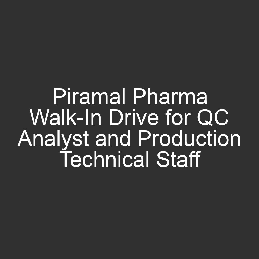 Piramal Pharma Solutions is conducting a walk-in interview for QC Analyst and Production Technical Staff roles.