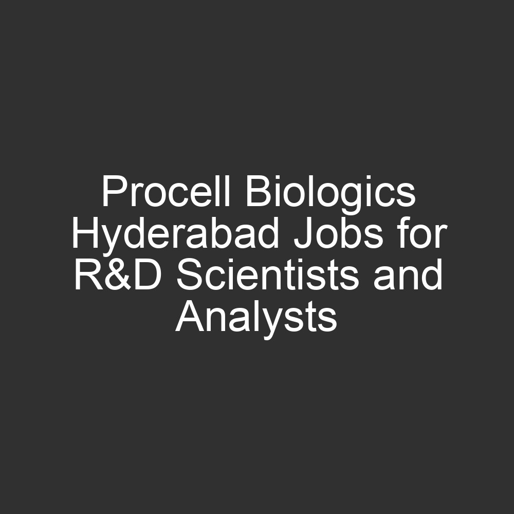 | Procell Biologics Private Limited R&D Job Openings in Genome Valley, Hyderabad. |