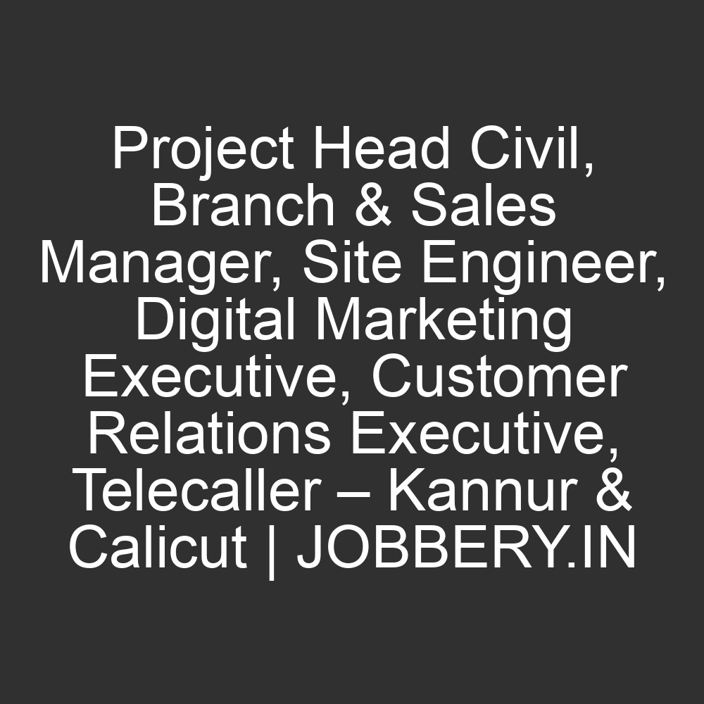 Project Head Civil, Branch & Sales Manager, Site Engineer, Digital Marketing Executive, Customer Relations Executive, Telecaller – Kannur & Calicut | JOBBERY.IN
