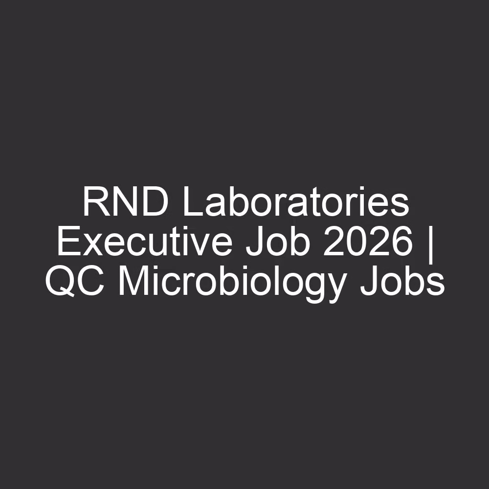 RND Laboratories Executive Job 2026 – QC Microbiology Department