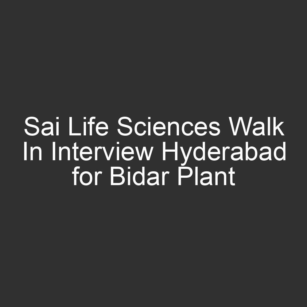 Sai Life Sciences, a global Contract Development and Manufacturing Organization (CDMO), is hosting a walk-in interview in Hyderabad for various technical roles at their Bidar facility. As a “Great Place to Work” certified organization, Sai Life Sciences offers a dynamic environment for professionals looking to contribute to the global pharmaceutical supply chain.