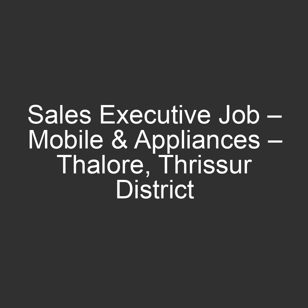 Sales Executive Job – Mobile & Appliances – Thalore, Thrissur District