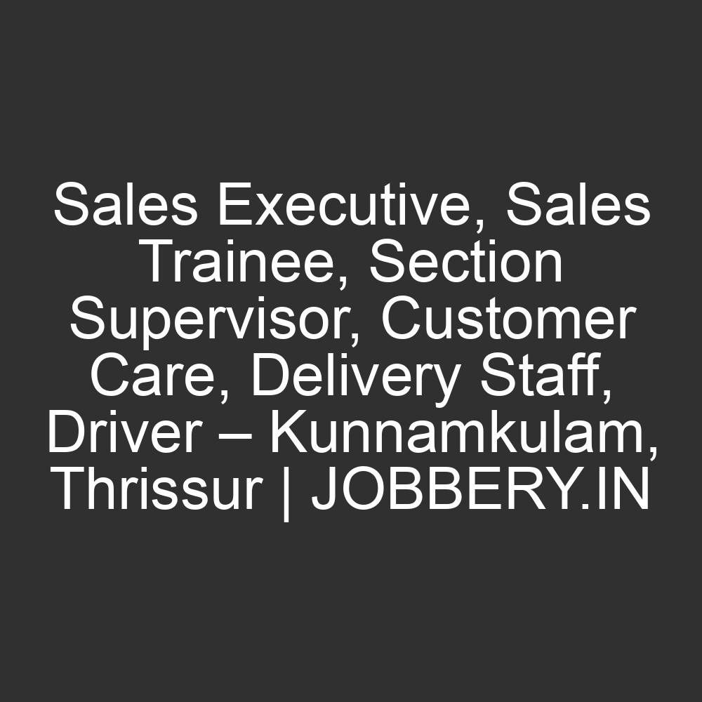 Sales Executive, Sales Trainee, Section Supervisor, Customer Care, Delivery Staff, Driver – Kunnamkulam, Thrissur | JOBBERY.IN
