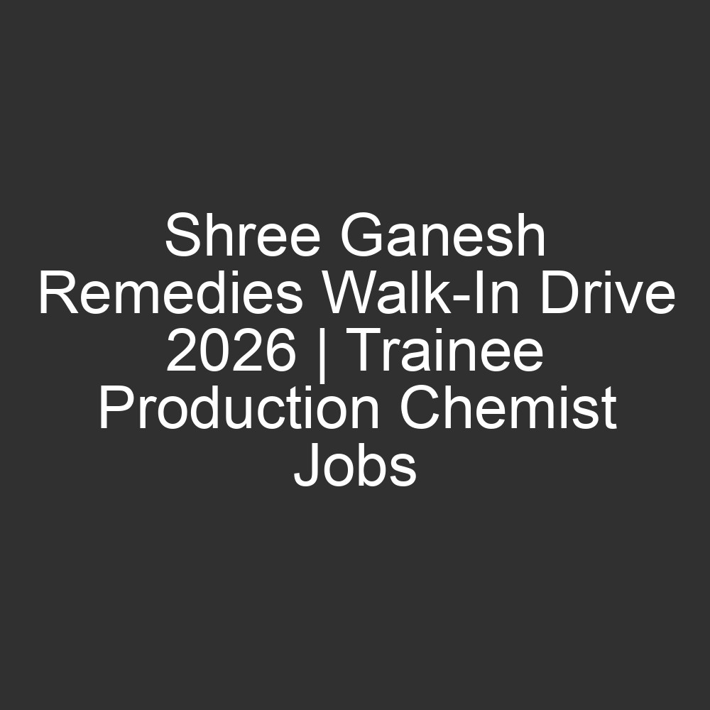 Shree Ganesh Remedies Walk-In Drive 2026 | Trainee Production Chemist Jobs