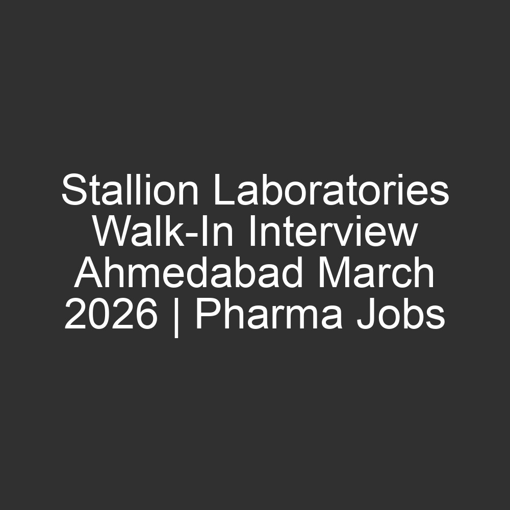 Stallion Laboratories Walk-In Interview March 2026 Ahmedabad
