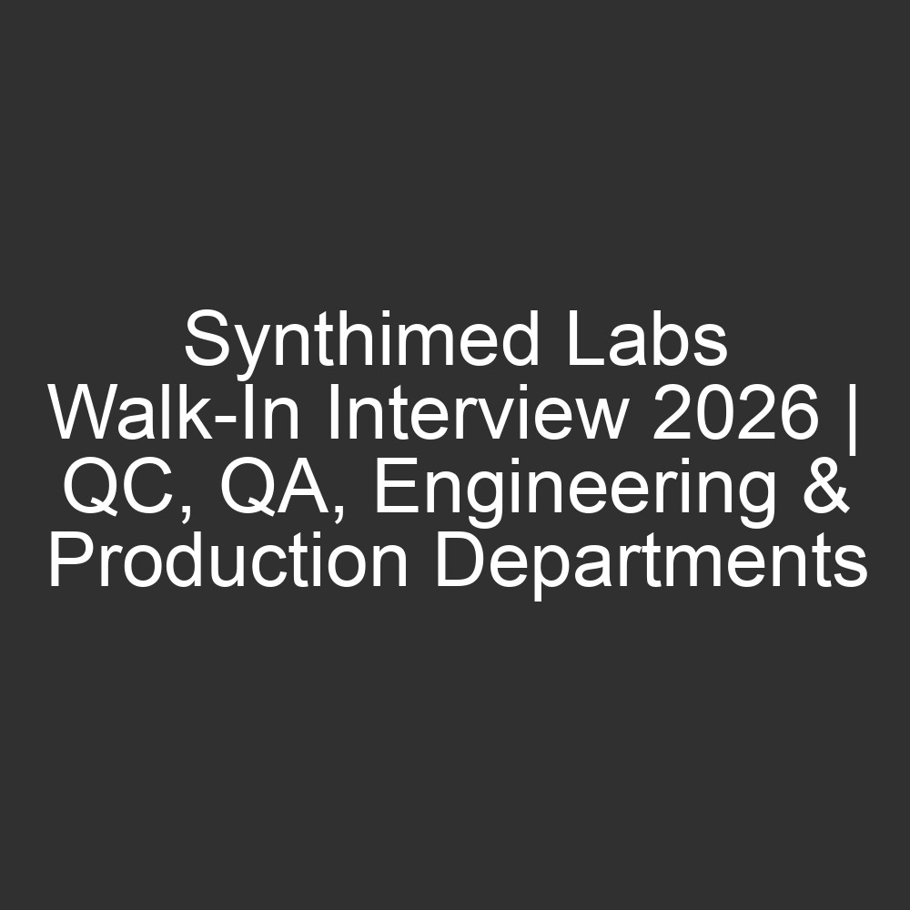 Synthimed Labs Walk-In Interview 2026 | QC, QA, Engineering & Production Departments
