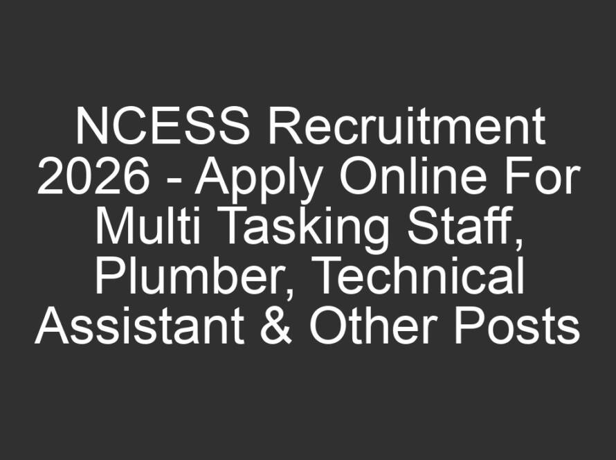 All JobsApril 2, 2026NCESS Recruitment 2026 – Apply Online For Multi Tasking Staff, Plumber, Technical Assistant & Other Posts