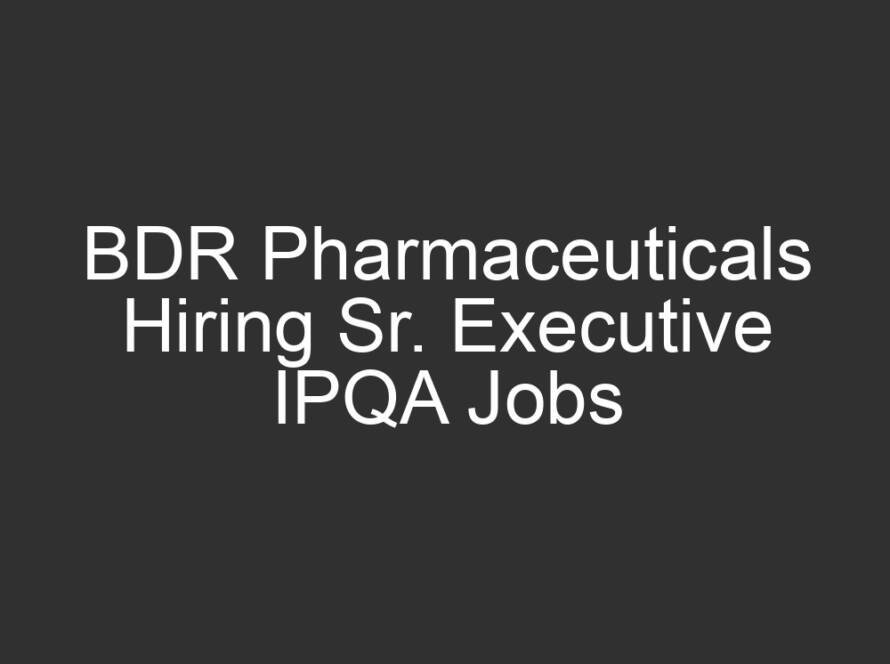 All Jobs, All over India Jobs, Multi National company JobsMarch 24, 2026BDR Pharmaceuticals Hiring Sr. Executive IPQA Jobs