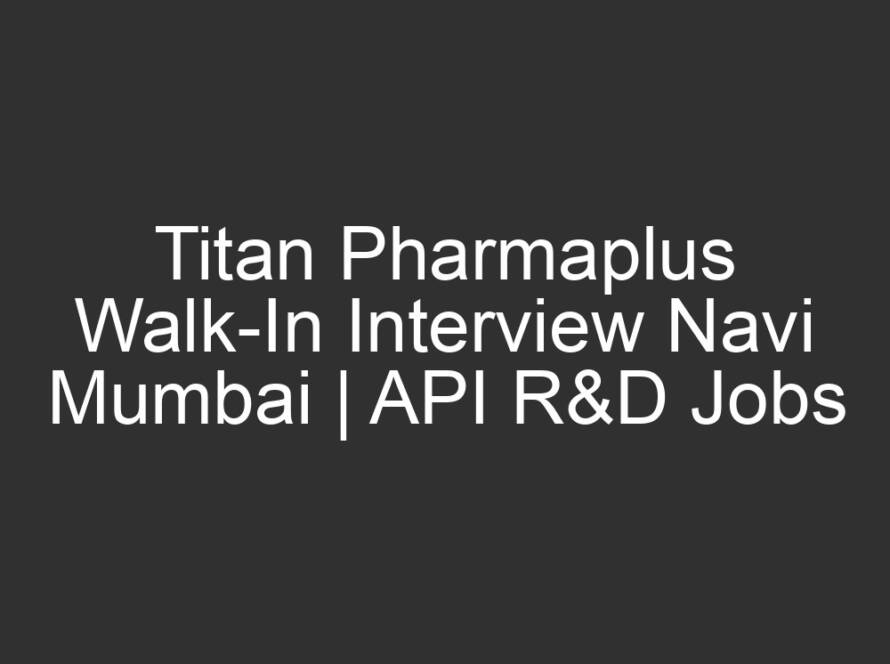 All Jobs, All over India Jobs, Multi National company JobsApril 9, 2026Titan Pharmaplus Walk-In Interview Navi Mumbai | API R&D Jobs