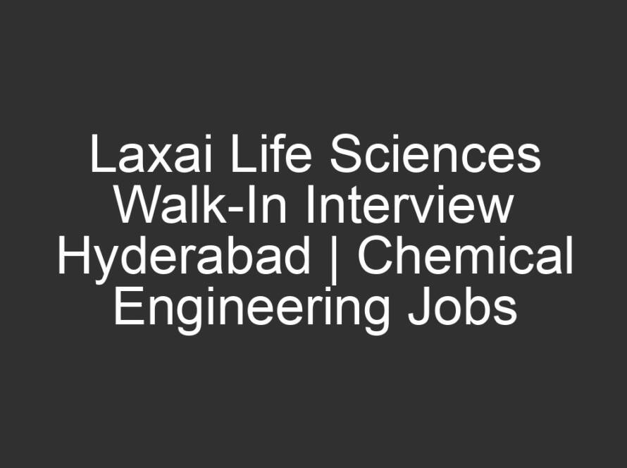 All Jobs, All over India Jobs, Multi National company JobsApril 9, 2026Laxai Life Sciences Walk-In Interview Hyderabad | Chemical Engineering Jobs