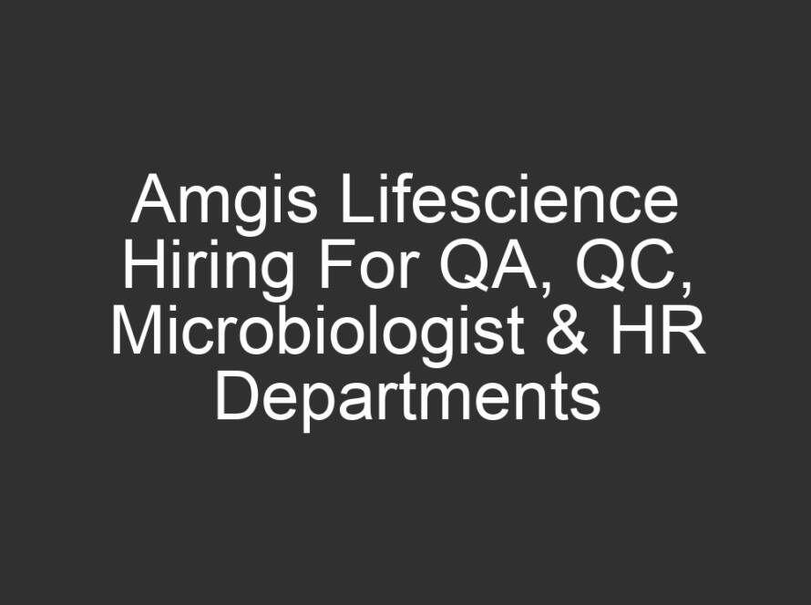 All Jobs, All over India Jobs, Multi National company JobsApril 9, 2026Amgis Lifescience Hiring For QA, QC, Microbiologist & HR Departments