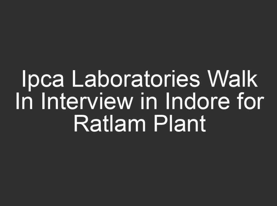 All Jobs, All over India Jobs, Multi National company JobsApril 2, 2026Ipca Laboratories Walk In Interview in Indore for Ratlam Plant