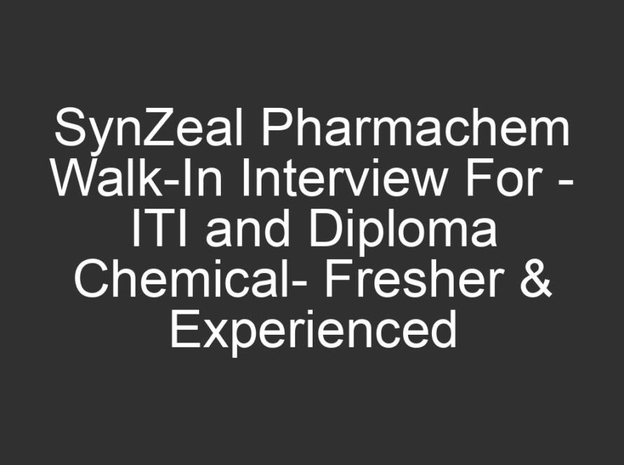 All Jobs, All over India Jobs, Multi National company JobsApril 6, 2026SynZeal Pharmachem Walk-In Interview For – ITI and Diploma Chemical- Fresher & Experienced