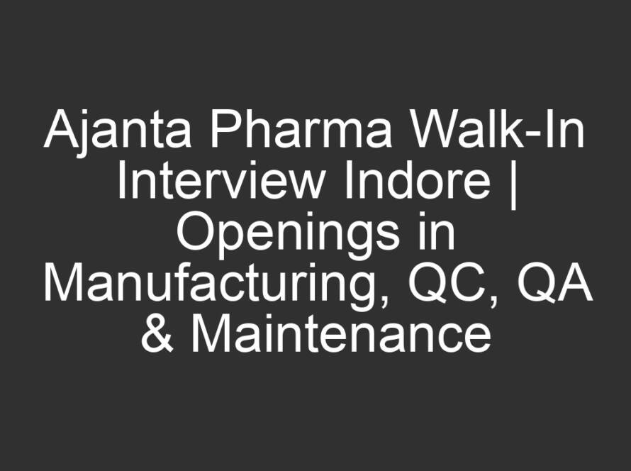 All Jobs, All over India Jobs, Multi National company JobsApril 7, 2026Ajanta Pharma Walk-In Interview Indore | Openings in Manufacturing, QC, QA & Maintenance