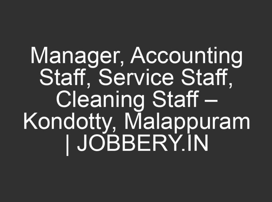 All JobsMarch 23, 2026Manager, Accounting Staff, Service Staff, Cleaning Staff – Kondotty, Malappuram | JOBBERY.IN