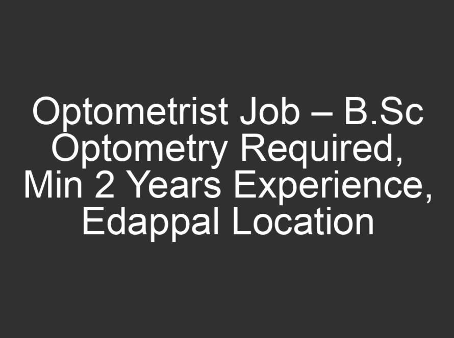 All JobsApril 7, 2026Optometrist Job – B.Sc Optometry Required, Min 2 Years Experience, Edappal Location