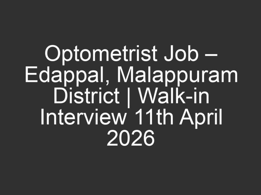 All JobsApril 7, 2026Optometrist Job – Edappal, Malappuram District | Walk-in Interview 11th April 2026