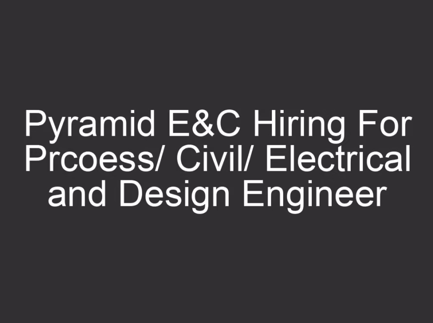 All Jobs, All over India Jobs2 days agoPyramid E&C Hiring For Prcoess/ Civil/ Electrical and Design Engineer
