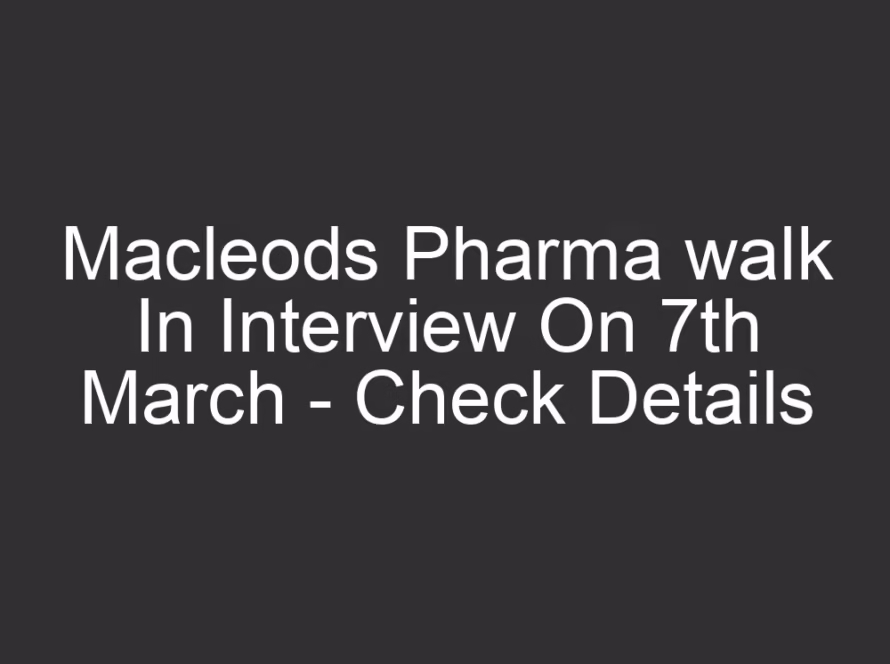 All Jobs, All over India Jobs2 days agoMacleods Pharma walk In Interview On 7th March – Check Details