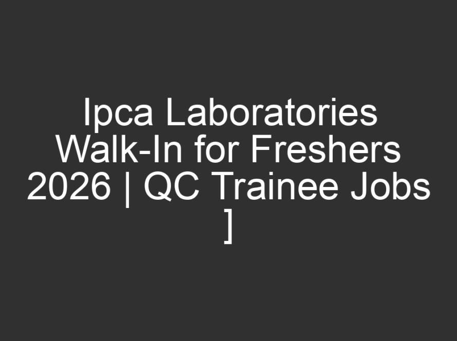 All Jobs, All over India Jobs, Multi National company Jobs4 days agoIpca Laboratories Walk-In for Freshers 2026 | QC Trainee Jobs ]
