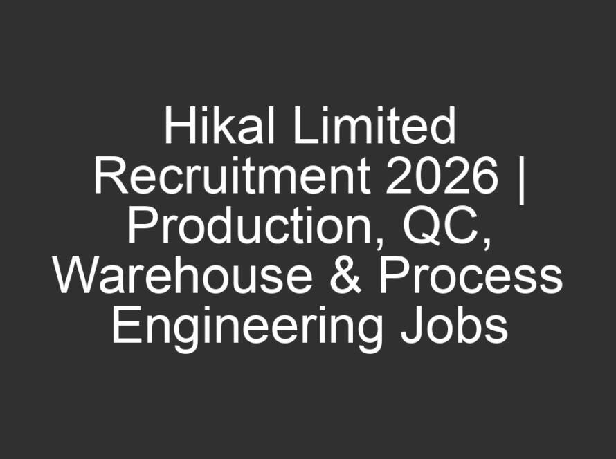 All Jobs, All over India Jobs, Multi National company Jobs2 days agoHikal Limited Recruitment 2026 | Production, QC, Warehouse & Process Engineering Jobs