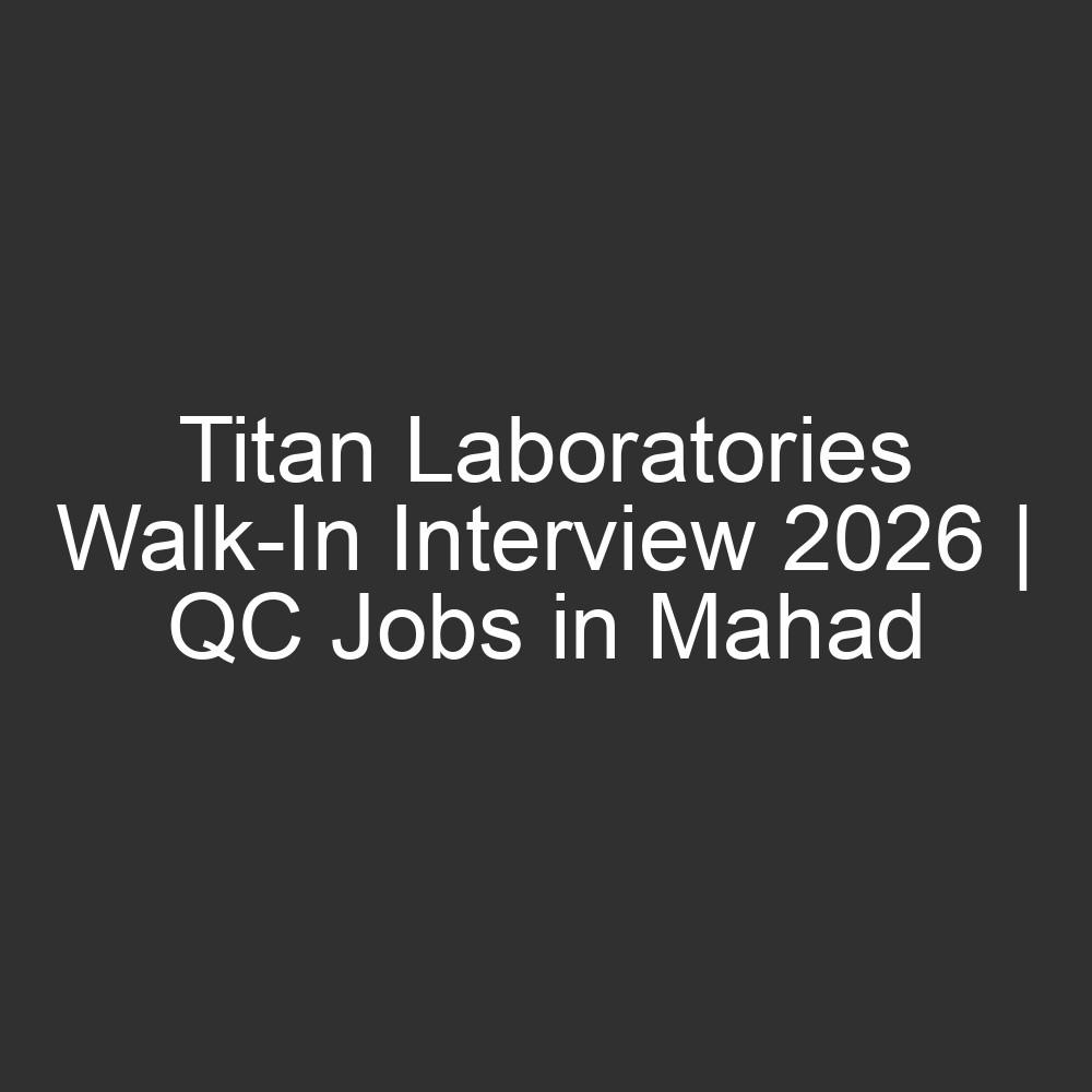 Interview Venue: Titan Laboratories Pvt. Ltd., Rupa Renaissance, Gate No. 7, Plot No. 207, Unit No. 401, Ground Floor Turbhe MIDC Road, TTC Industrial Area, Juinagar, Navi Mumbai – 400705, Maharashtra, India.