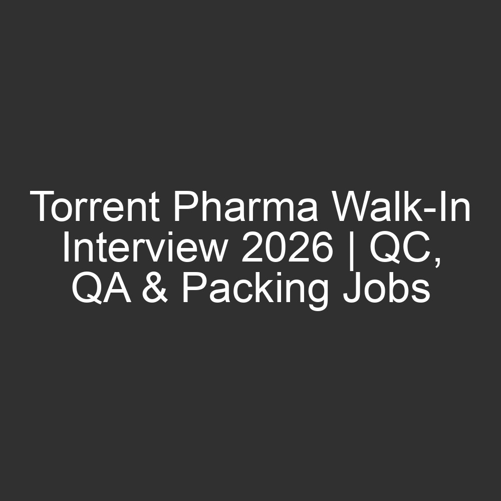 Torrent Pharma Walk-In Interview on 19th April 2026