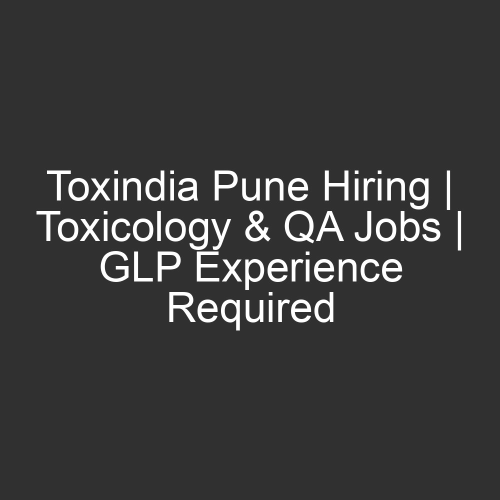 Toxindia is rapidly expanding its research capabilities and is on the lookout for skilled professionals with a solid background in Good Laboratory Practices (GLP). If you are looking to advance your career in a high-growth scientific environment in Pune, this is your chance to join a team dedicated to excellence in toxicology and regulatory studies.