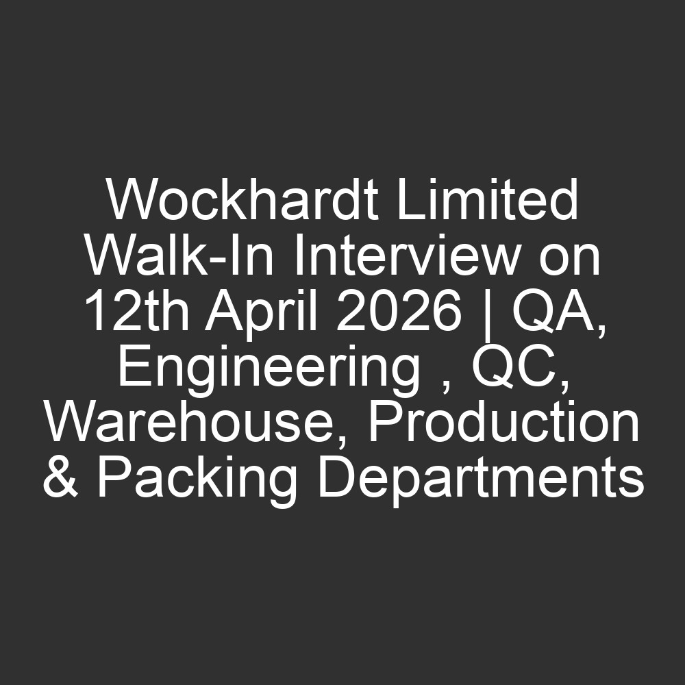Wockhardt Limited, a global pharmaceutical and biotechnology major, is conducting a massive recruitment drive in Vapi. Dedicated to “Life Wins,” Wockhardt offers a world-class environment for professionals to contribute to life-saving healthcare solutions. This is an exceptional opportunity for experienced candidates in the pharmaceutical sector to join a leader in innovation and quality.