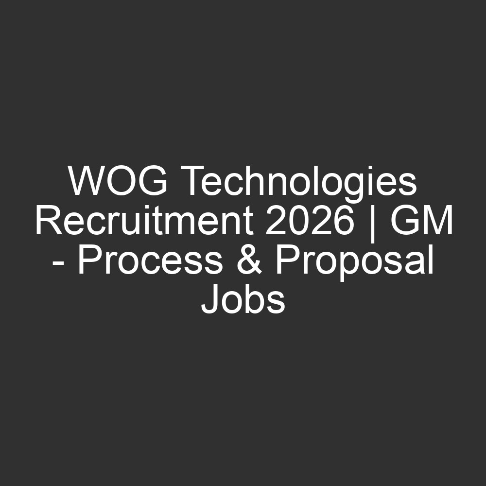 WOG Technologies Recruitment 2026: GM – Process & Proposal Opening