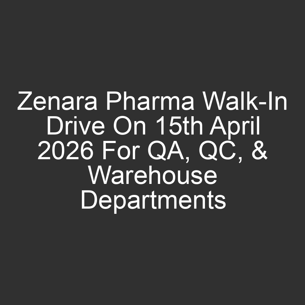 Zenara Pharma Walk-In Drive For QA, QC, & Warehouse Departments